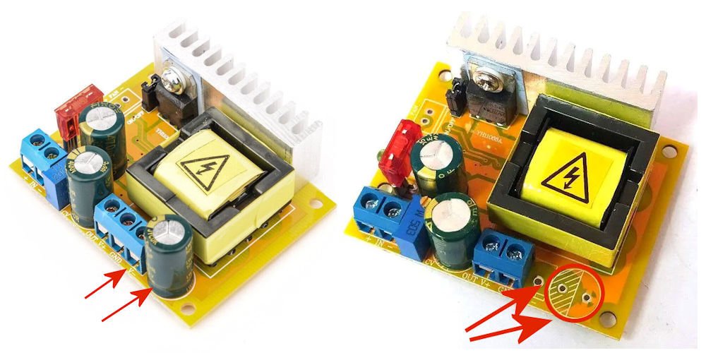 Je pense que cet fonctionnement étrange et erratique pourrait venir du dessin du circuit imprimé assez critique pour uen alimentation à découpage et qui ne serait pas adapté à des sorties laissées en l'air.