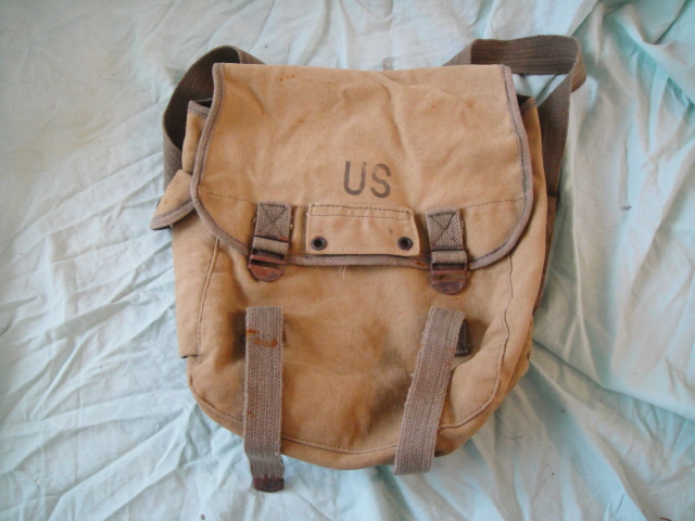 il ne reste plus que la musette M45 (field pack combat) est-ce celle la dont tu parle? si oui d’après ce que je décrypte c'est marqué 1949
