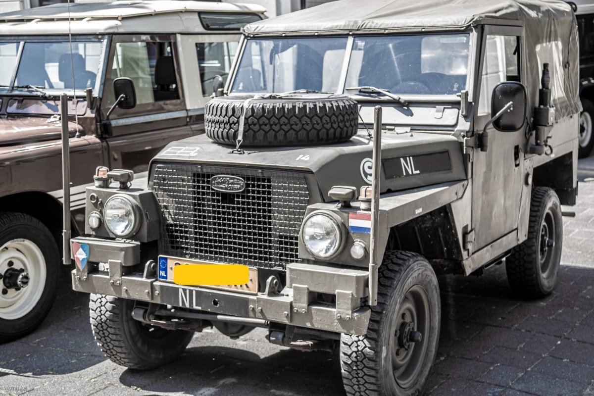 Un ami commandant en exercice dans l'armée néerlandaise vient avec son Land Rover Lightweight radio diesel, typique de la Force terrestre royale néerlandaise des années 80 (Koninklijke Landmacht, le KL de mon jerrican...):